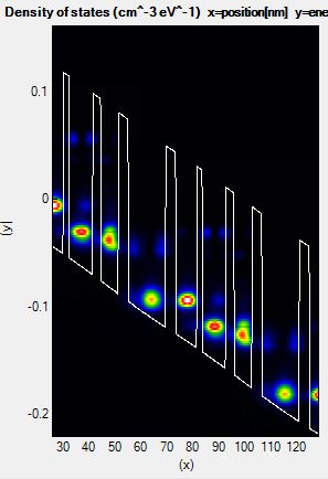 Figure 3.2.3 Density of states of a QCL calculated with a non-ideal energy range.