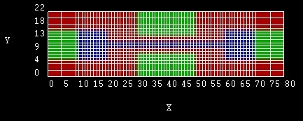 • A two-dimensional simulation is performed. The overall simulation domain, that is the real space region in which the device is defined, is taken to be a rectangle having the size 22 nm x 80 nm.