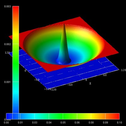 The left, vertical axis shows psi2 in units of nm-2 (the