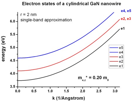 (wurtzite structure) that has a radius of 2 nm with infinite barriers so